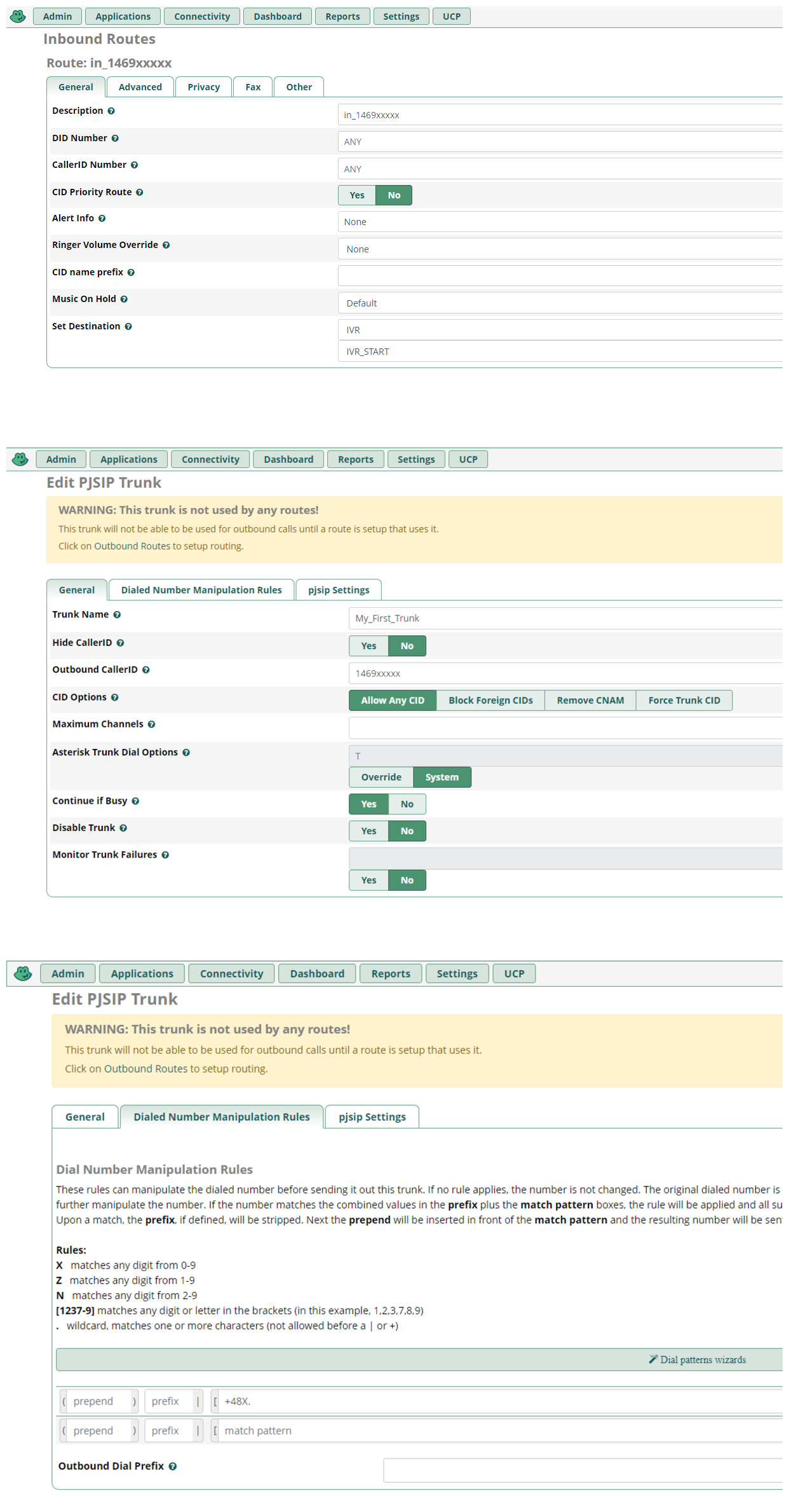 At this moment all calls from all connected VoIP account/numbers FreePBX transfer to one the same extension/IVR for example 201/IVR_1.