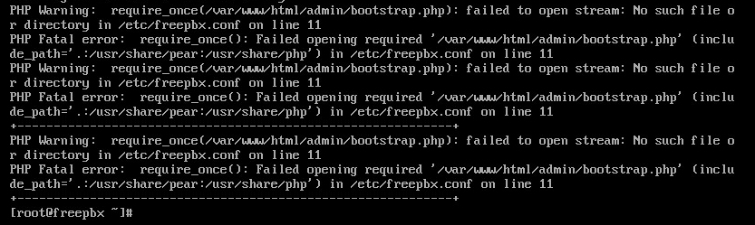 Hi everyone, I came into work today to find the phone system down, with an error I hadn’t seen before. I’ve checked in the /var/www/html/admin directory and the boostrap.php fine doesn’t exist. No one has been into the system in a few weeks, and it was working fine until this morning. Checked /etc/freepbx.conf and it’s pointing to the bootstrap file which just doesn’t seem to exist anymore.