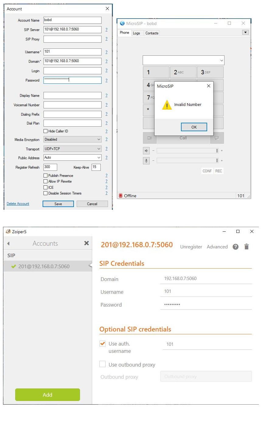 They all seem to fail on authentication. I am using only the IP of the FPBX server and the user name/password in these softphone progs. I am not even trying any app that requires an account configuration. I intend to keep all on the LAN ONLY behind my firewall and NO data will go anywhere except on my LAN so nothing can phone home in any way.