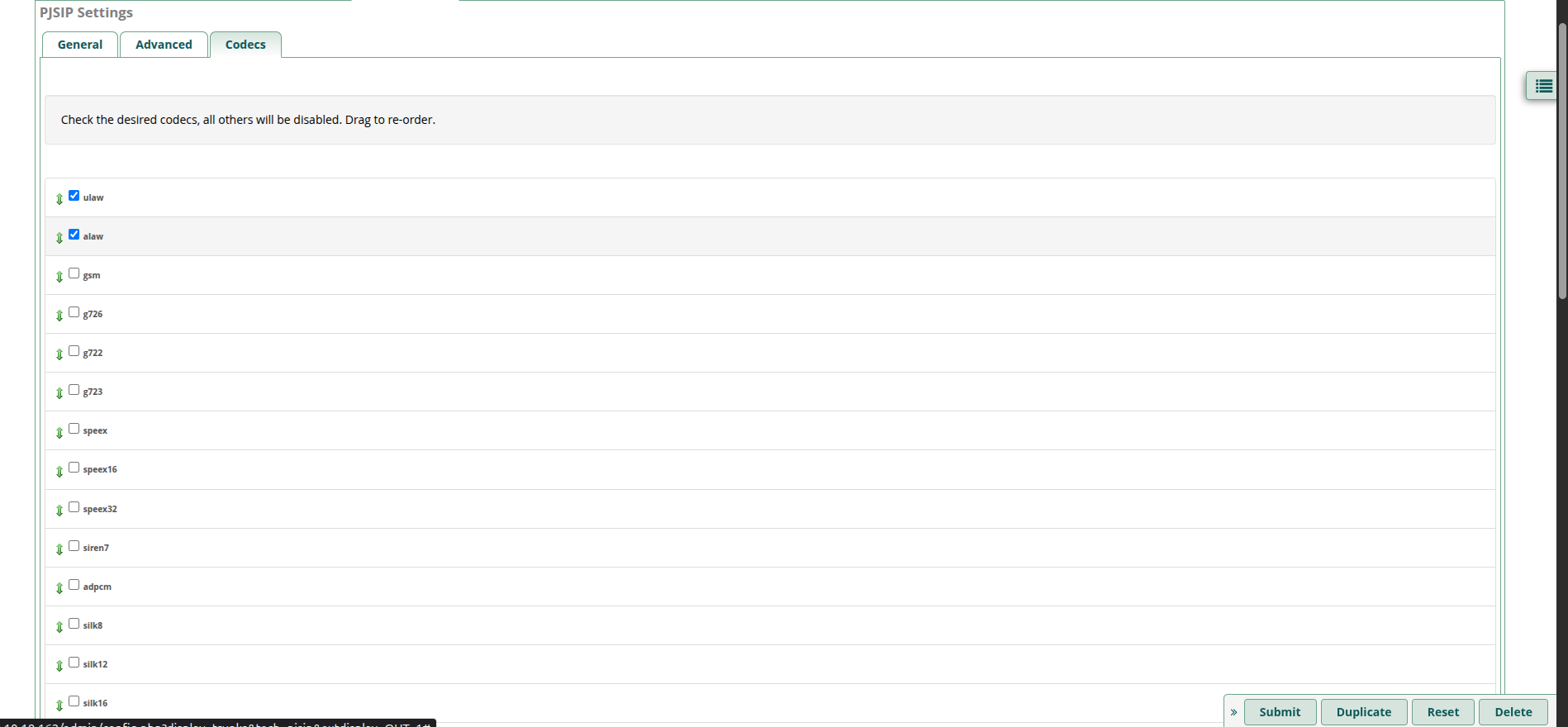- The two cases are presenting a different set of codecs. Try disabling all but alaw and ulaw.