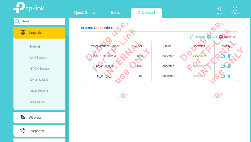 Theres a modem(TP-LINK Archer XR500V) which receives fiber input. In that we register a vlan with connection type as DynamicIP. Then we bind that connection to a LAN port of modem, where the freepbx server connects.