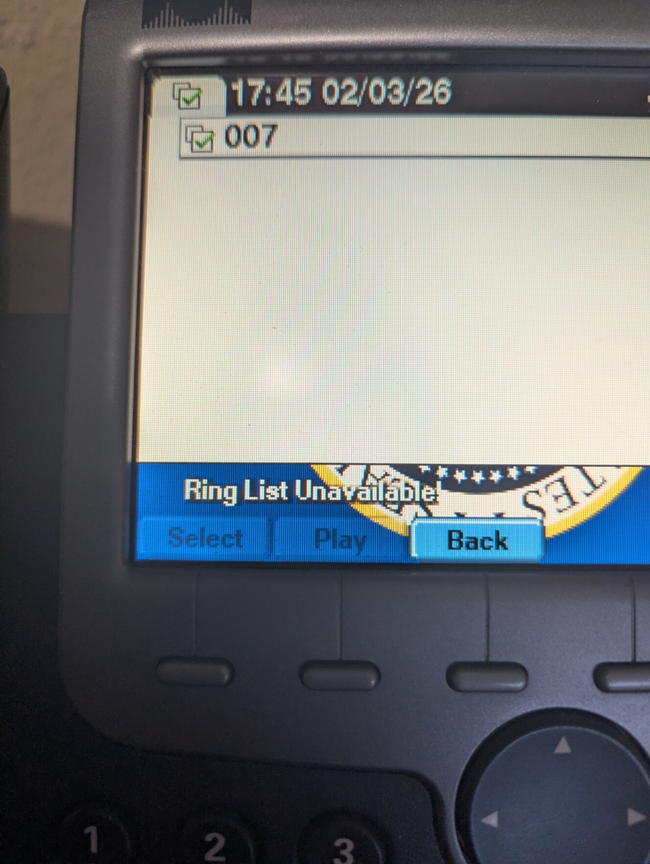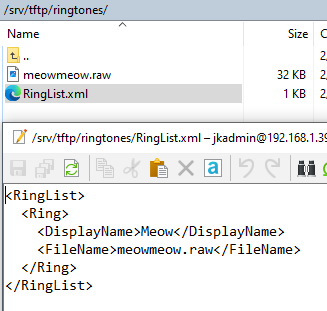 I followed all the instructions and created RingList.xml in ringtones folder in tftp, RINGLIST.DAT file, and raw ringtone file. But after tftp upload and when I go to User Preference | Rings I get “Ring List Unavailable.”