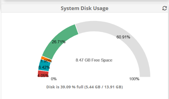 If you installed with the beta ISO, the System Disk Usage widget in Dashboard is misreporting. Check the actual usage in Admin > System Admin > Storage