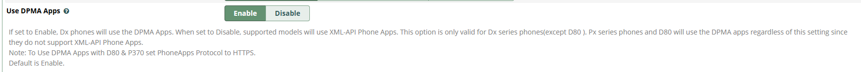 Please make sure Use DPMA Apps is set to Enable under phone template, then rebuild the config and update to the phones,