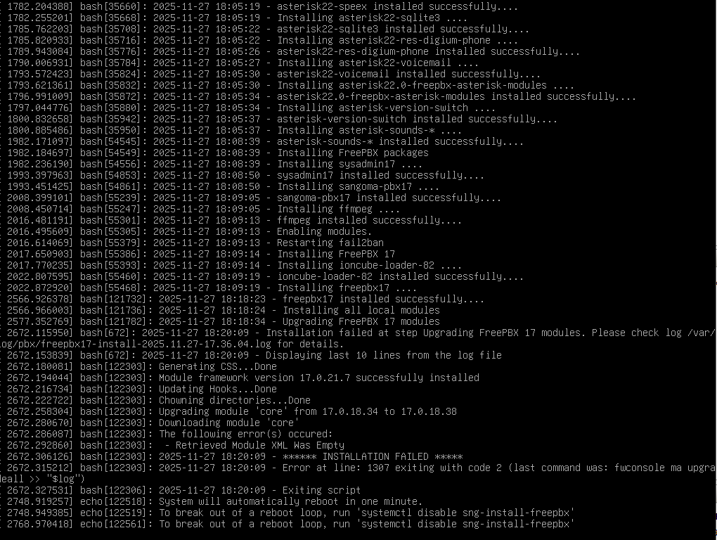 Hi there i just tried to install v17 FOG from the ISO on a freshly baken Hyper V gen 1 machine with 4 GB 2 core, i tried to match my specs with one of the FreePBX pre-build machines. But then this happened.