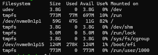 So i couldnt figure out how to enable that widget on the dashboard but when i ssh in i can run df -h and this is what i see. but when the phones stop working the /dev/nvme0n1p1 goes to 100% and only gets cleared after a reboot.