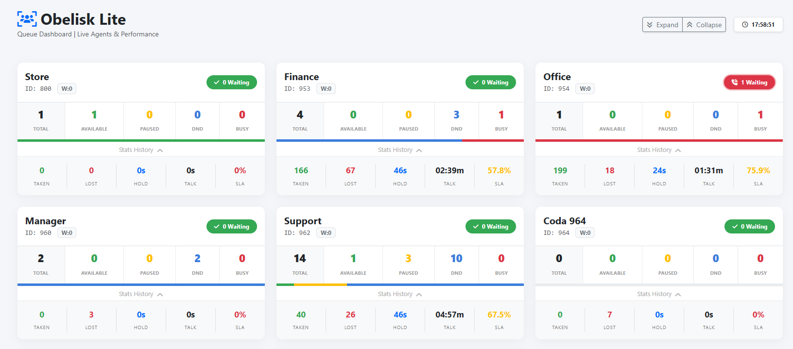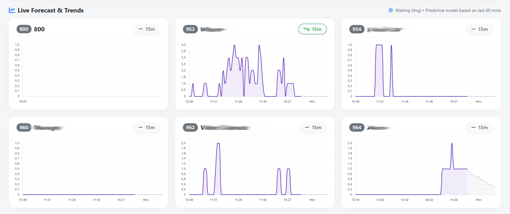 A linear regression algorithm estimates call trends over the next 15 minutes for each queue, allowing a Team Leader to make real-time decisions about moving agents from one queue to another.