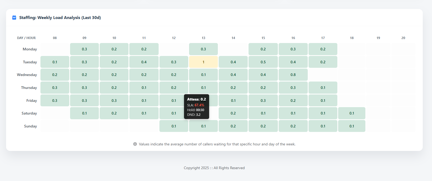 The monthly Staffing function allows you to understand which are the hottest days of the week in terms of workload, this allows a Teal Leader to reorganise the shifts