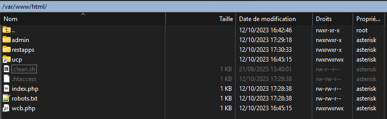 -rw-r–r-- 1 asterisk asterisk 732 Aug 21 09:49 /var/www/html/.clean.sh
