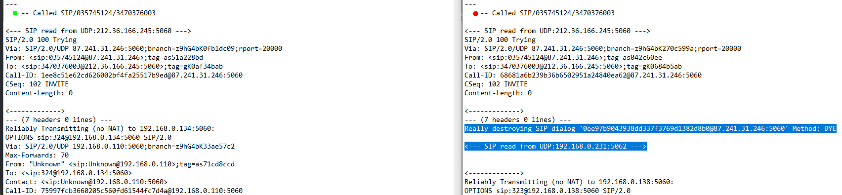 the problem is very random, as per following screenshot, so i think the best way is just to read what is actually going on during the calls and try to understand what are the differences between a good call and a broken on!