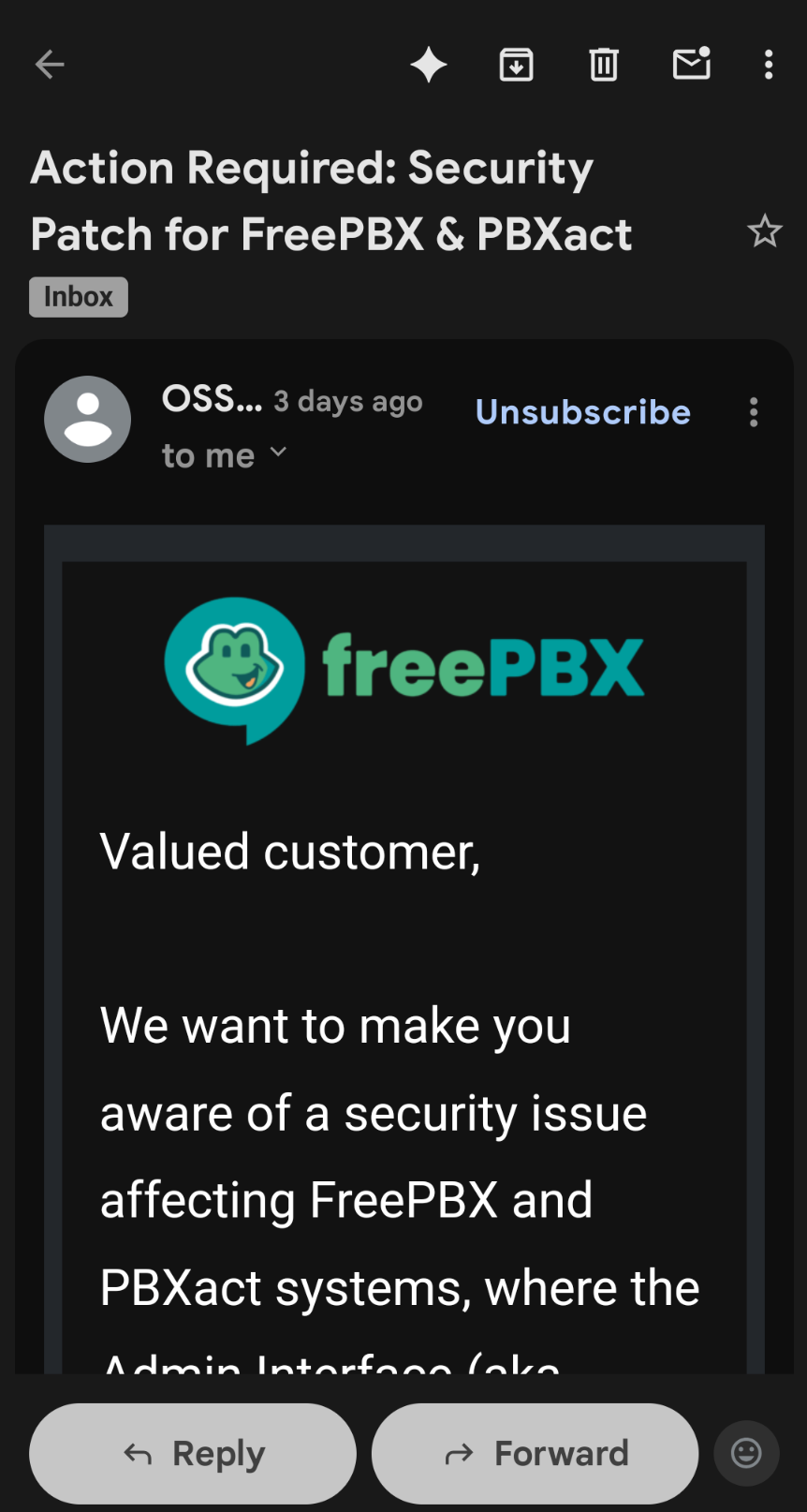 I agree here. I’ve been a sangoma partner for many years and got not specific notice of this either other than these topic threads. I happened to stumble on the topic because one of my systems was compromised.