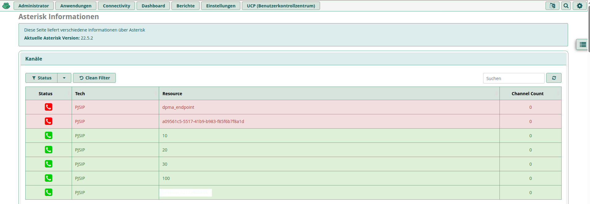 i can’t assign two red telephone receiver icons in the FreePBX web UI under “Reports>Asterisk Information>Channels.” Why are these two icons red?