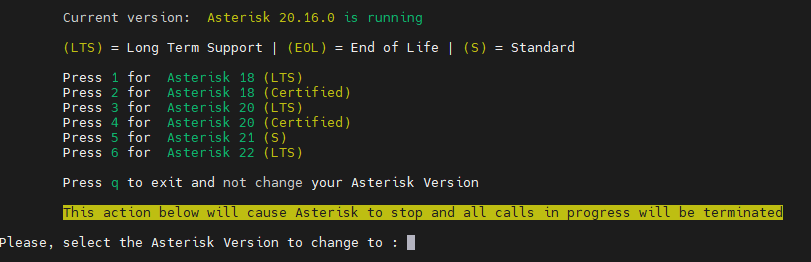 Ran the scripts, ran asterisk-version-switch and tried to switch to version 18. Asterisk still thinks I am on version 16.0.